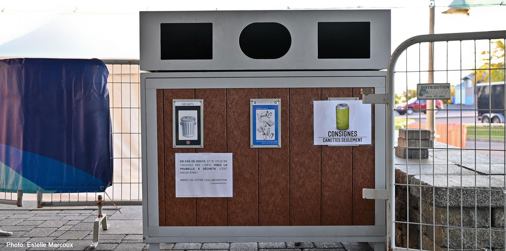 Nous avons complètement éliminé les contenants jetables (ex : bouteilles d’eau et gobelets en plastique) dans les bars et concessions alimentaires du festival. Ceux-ci sont remplacés par des contenants réutilisables (Écocups). Nous demandons à nos exposants d’appliquer également cette démarche sur leurs stands.
